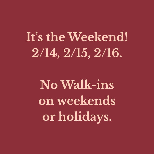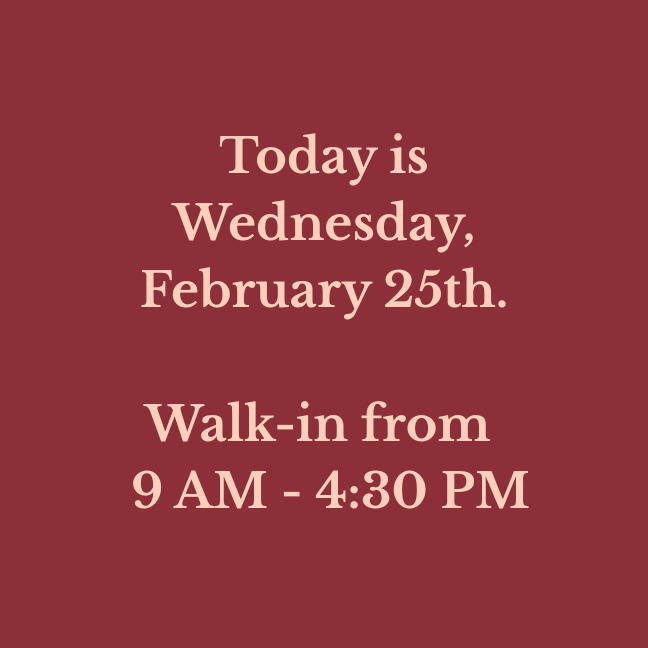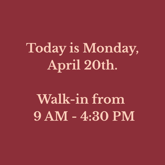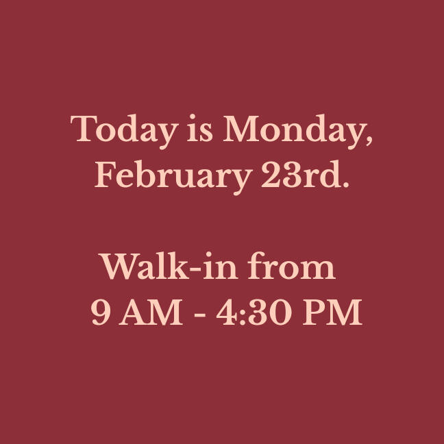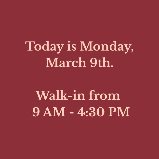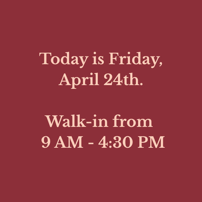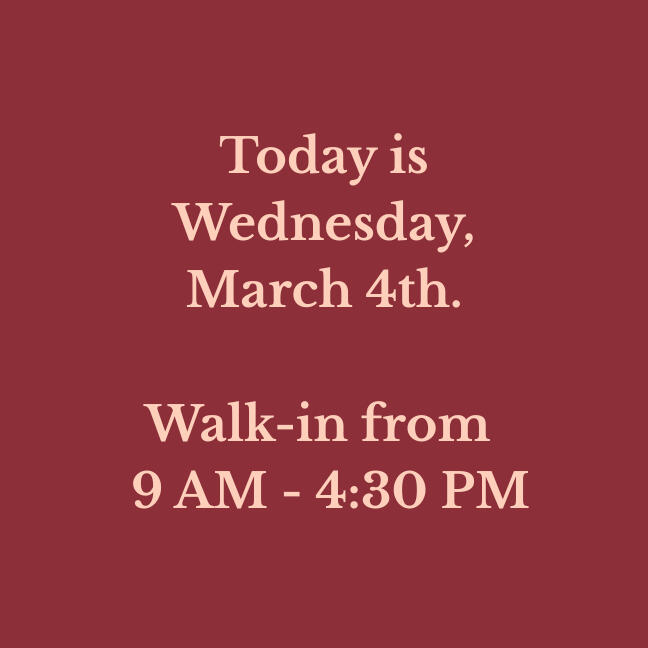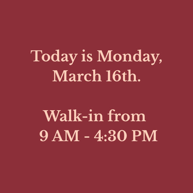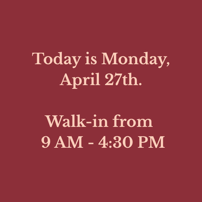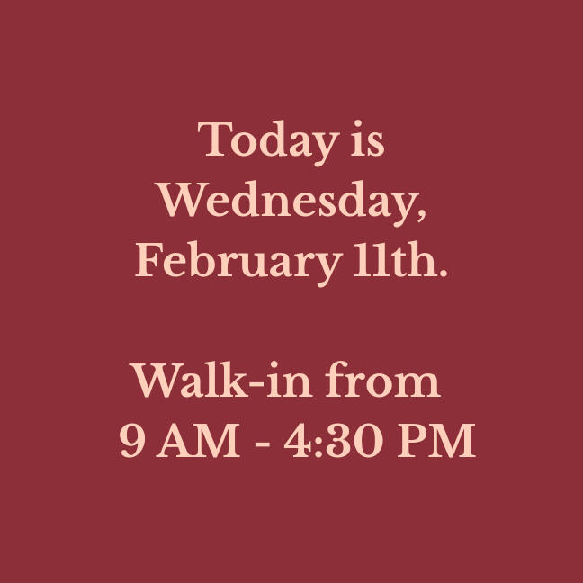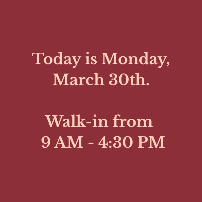 Our walk-in hours are updated daily. Verify before you drive!